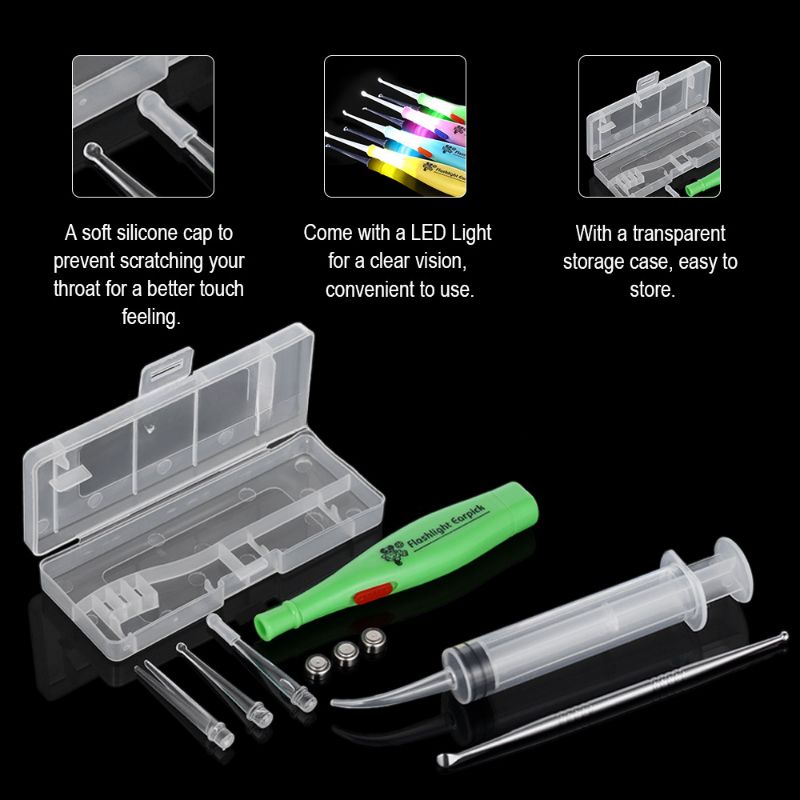 This is an incredibly simple, yet useful tool with non-slip handle for the removal of those annoying tonsil stones. If you have ever suffered from them, then you already know how much of a nuisance they can be! This tool comes with 3 attachment heads which are used with the assistance of a bright LED light in order to gently extract tonsil and ear stones, thus eliminating symptoms which may include: Bad Breathe, Trouble Swallowing or Sore ThroatExtension tip(s) may come loose during use. Make sure tips are secure prior to using.Come with a storage boxUse the irrigation syringe to rinse those tight areas. The syringe can be filled with your favorite mouthwash, or plain water.Overal length of the stainless steel pick: 12cmNon-slip longer handle of the stainless steel pick makes it safer and easier to use.Packing List:Tonsil Stone Extractor Tool2 Extractor Heads1 Precision Tweezer HeadBatteries insideStorage box1 Irrigation Syringe1 stainless steel pick