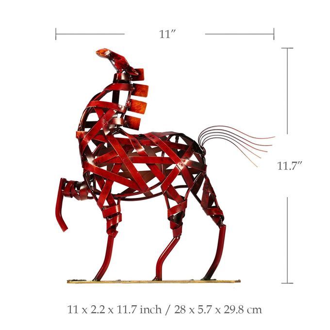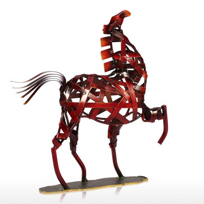 This metal braided horse artwork is designed and handmade by an experienced artist. The red house roars and neighs with its head held high, looking extraordinary and full of momentum. As a metal weaving handicraft, it is fashionable and special, and the red baking varnish is smooth and antioxidant. The powerful and energetic horse also shows the master's high spirits.