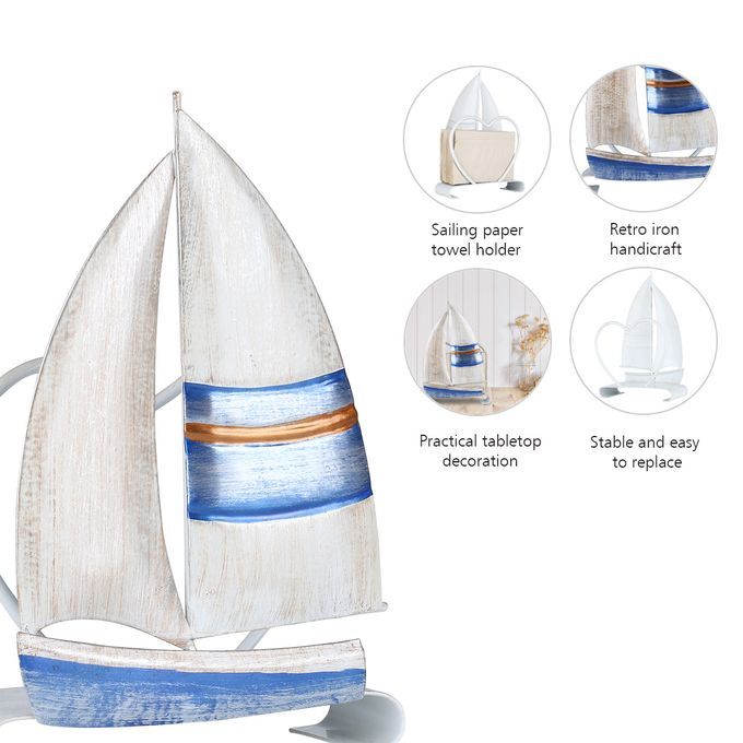 Tooarts Sailing Boat Napkin Holder Iron Napkin Holder Creative Ornament Hotel Paper Case Kitchen Paper Holder Table Decoration and Finishing