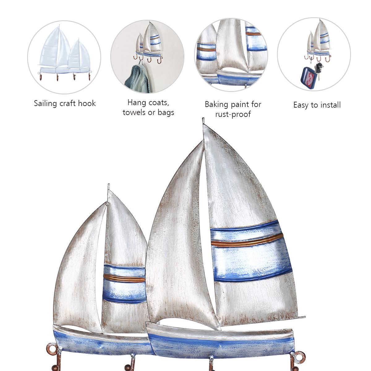 Buy Tooarts Sailing Boat Wall Hook Iron Hanger 4 Hooks for Coats Bags Wall Mount Clothes Holder Decorative Gift in Nigeria
