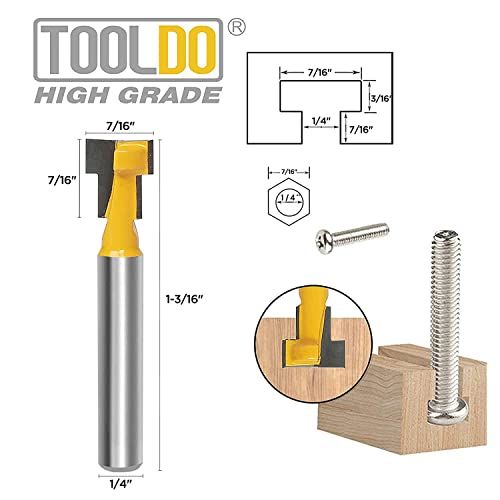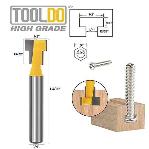 - 5-piee router bit set provides more variety of T-slots or keyhole slots
