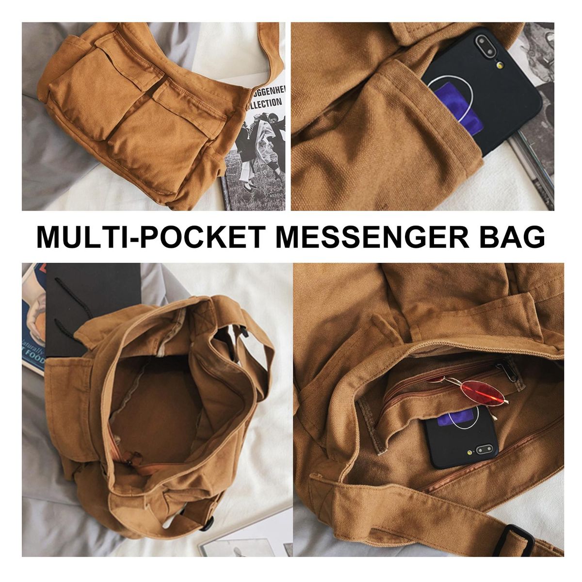 Buy Tooling style shoulder messenger bag men and women ins canvas bag student school bag street large capacity art leisure bag brown in Nigeria