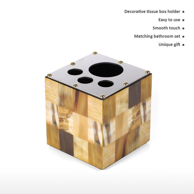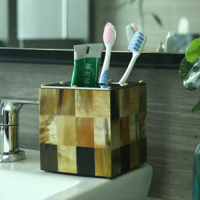 This is a concise and modern toothbrush container. On the surface, there are delicate horn stripes. It can hold 3 toothbrushes and a toothpaste.