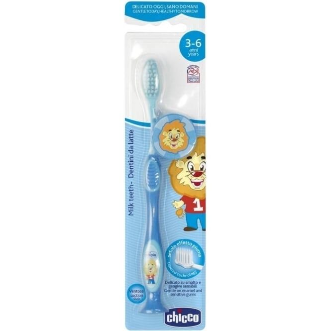 With ultra fine tapered soft bristles technology which are ideal solution to start expert oral hygiene for your baby's first milk teeth. Dental hygiene habits should start from the very beginning, even before the first tooth comes in. It is important infact to prevent the buildup of bacteria and to establish good oral health habits in the baby right away. Chicco new Oral Care Line takes care of babies' gum and teeth during all the steps of their growth, from the very beginning. Rounded Head and thin neck designed for baby's small mouth. Innovative ultra-fine tapered bristles are gentle on irritated gums and extra-soft for a delicate action, while ensuring proper cleaning of baby's teeth. The Neck of toothbrush is slightly angled to reach the back corners of the mouth. It comes with large,soft anti-slip handle that can be easily gripped by mummy, daddy and children. Brush cover also included. It is recommended for 3 to 6years kids.check the others coloures of the toothbrush , paste and the complete set of oral paste on yinkus rehmie online shopping delivery to your door step.