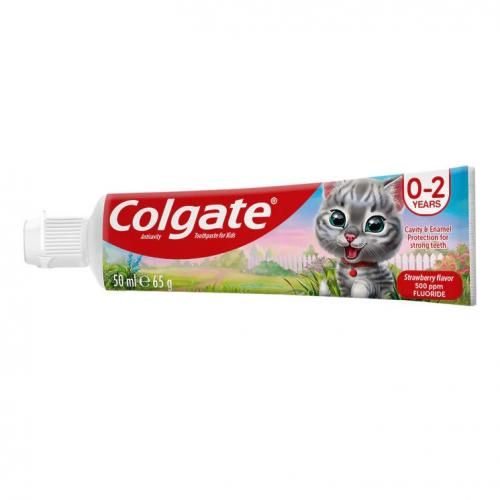 0-2 years with deciduous anterior teeth and developed molars. Corrugated anti-cavity toothpaste provides clinically proven protection against tooth decay and enamel. Mild and safe toothpaste for your child effectively cleans your mouth and keeps it fresh. The fruity taste allows children to enjoy brushing. Specially formulated for children with small teeth, Colgate Baby Anti-Cavity Toothpaste Strawberry 50ml has a very fruity taste that kids love. Provides gentle cleansing.