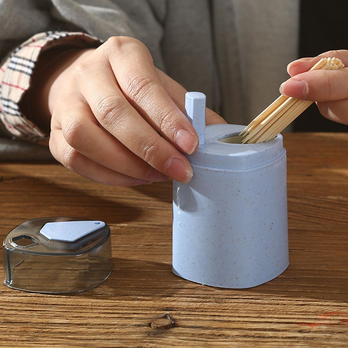 Just gently press the button on the top, and a toothpick will automatically pop-up. The press-type design make it very convenient to use, so that you no longer have to rush to find the toothpick and get hurt by the toothpick.