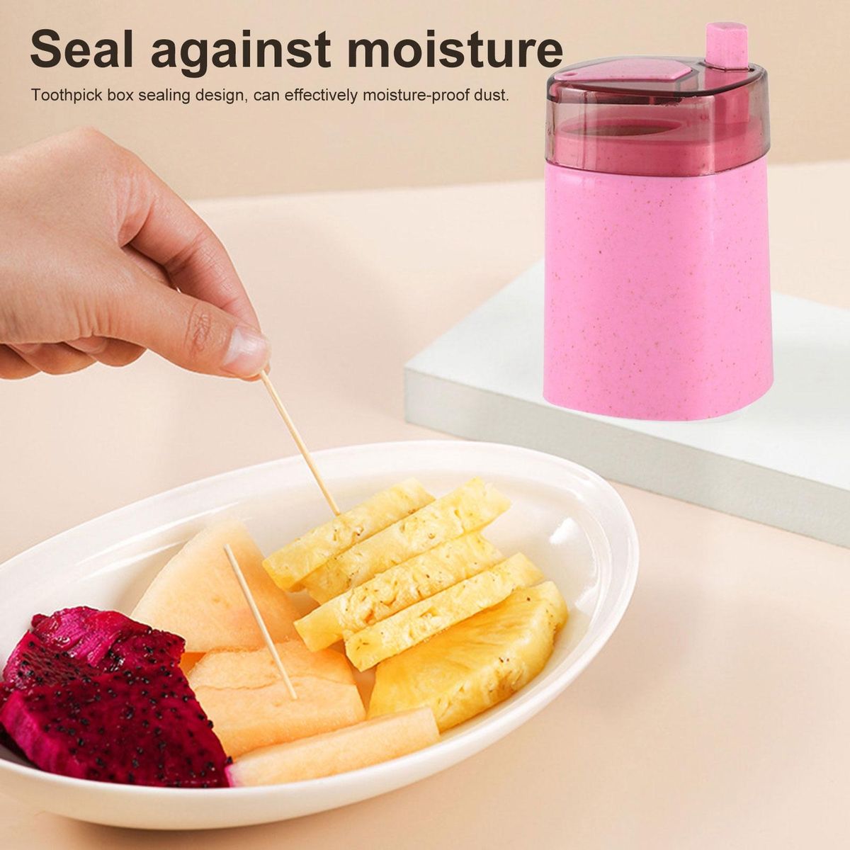 Just gently press the button on the top, and a toothpick will automatically pop-up. The press-type design make it very convenient to use, so that you no longer have to rush to find the toothpick and get hurt by the toothpick.