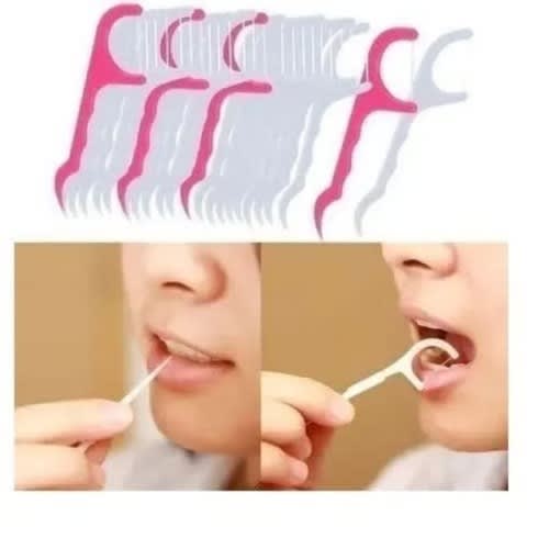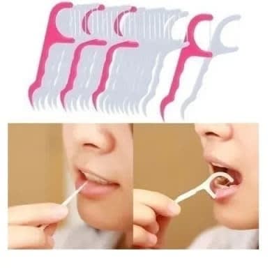 Pack of Dental Floss ToothpickDual use toothpick and floss heads30pcs/packCan be rinsed and reusedHealthyBacteria freeHygienicAvailable in different colours