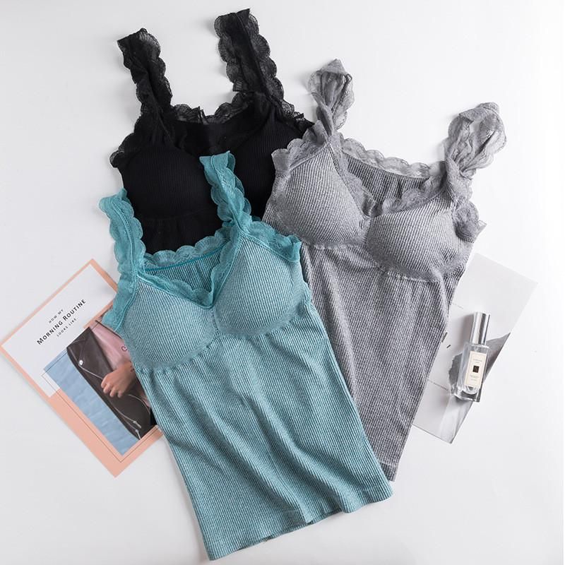 Senoras Slim Vest Top ropa de mujer transpirable Camiseta de tirantes de punto clasico superior Undershirt cuello redondo encaje correas camisa negra