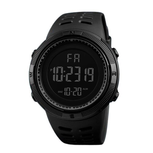 Chronograph Waterproof Men's Digital Sports watch, Multi-function Waterproof Watches + Free LED WatchMulti-functions: stopwatch/countdown, back light, dual time zones, independent Alarm, calendar, dustproof. The functions are useful for workout or in gyms.Waterproof (164ft / 50m) is convenient for user water splash, rain, water wash, shower and swim. But avoid hot water/steam or diving. Pressing button under water is also not allowed.Sports Watch for Men: smooth band, simple to figure out how to use, fashion looking, no logo on the face, large numbers are easy to read. All these features provide good wearing experience. Remove the protective film on dial will make illumination more clear.Durable materials and Resistant to Damage: plastic shell and hard resin glass has damage resistance to scratches, falloff and daily bumps.