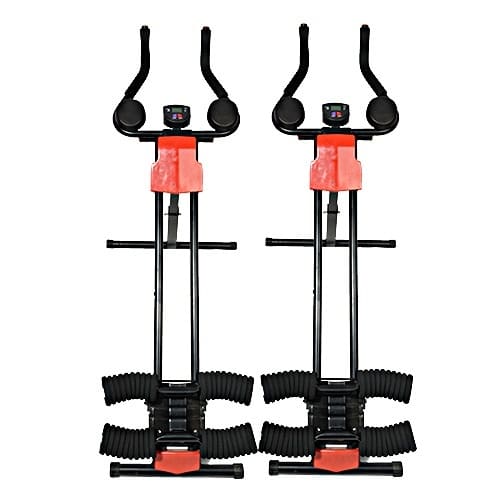 This elliptical provides a unique and innovative design that allows for the motions of an elliptical cross trainer or a bike, providing you a machine with two functionalities. You can also monitor via the on-board LCD display (time, distance, speed, and calories) while you are doing your great upper and lower body cardiovascular workout. The adjustable tension knob is provided to fit you need to work out at any level. The arms move with handlebars allow you to activate the muscle groups of your upper body. This elliptical is lightweight, compact, and wheels away easily for convenient storage. Upgraded Model