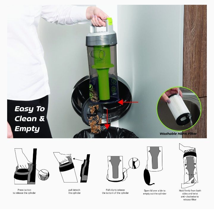 - DUST TANK -2.5L dust tank which is easy and mess-free to empty - The lightweight machine is easy to move around the house and up stairs