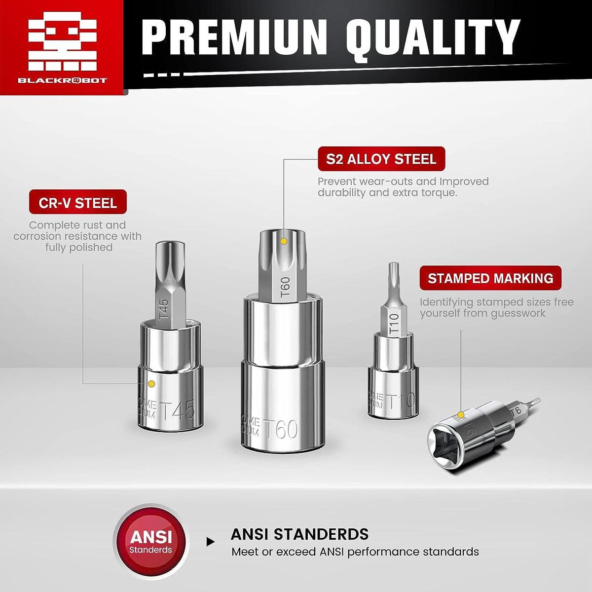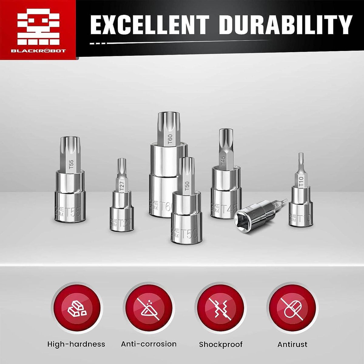 CORROSION-RESISTANT - Fully polished, Chrome plated mirror finish sockets and Zinc Phosphate bits treatment guarantee excellent durability.