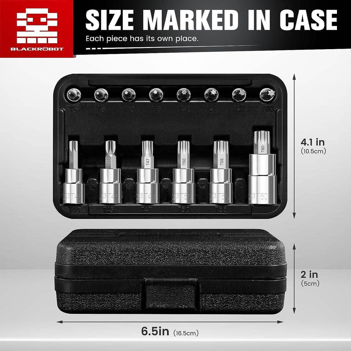 EASY TO IDENTIFY - The surface of the sockets and bits both has large, clear size markings that are easy to read and won't wear out. Comes with a storage case for easy portability. Dimensions are also printed under each slot for easy identification!