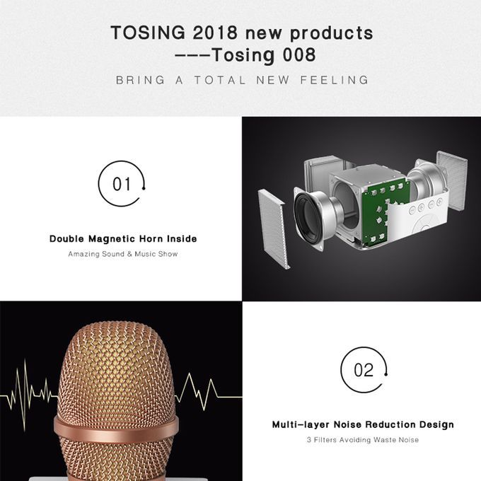 1 x TOSING Karaoke Microphone,1 x USB Cable,1 x Audio Cable,1 x User Manual (English)