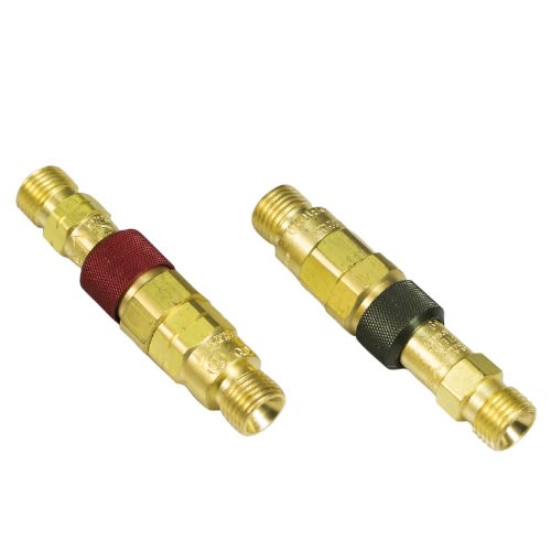 Non interchangeable Oxygen and Fuel Gas connectors prevent accidental gas mixing Instant closure on reverse flow Check Valves with total shutoffat