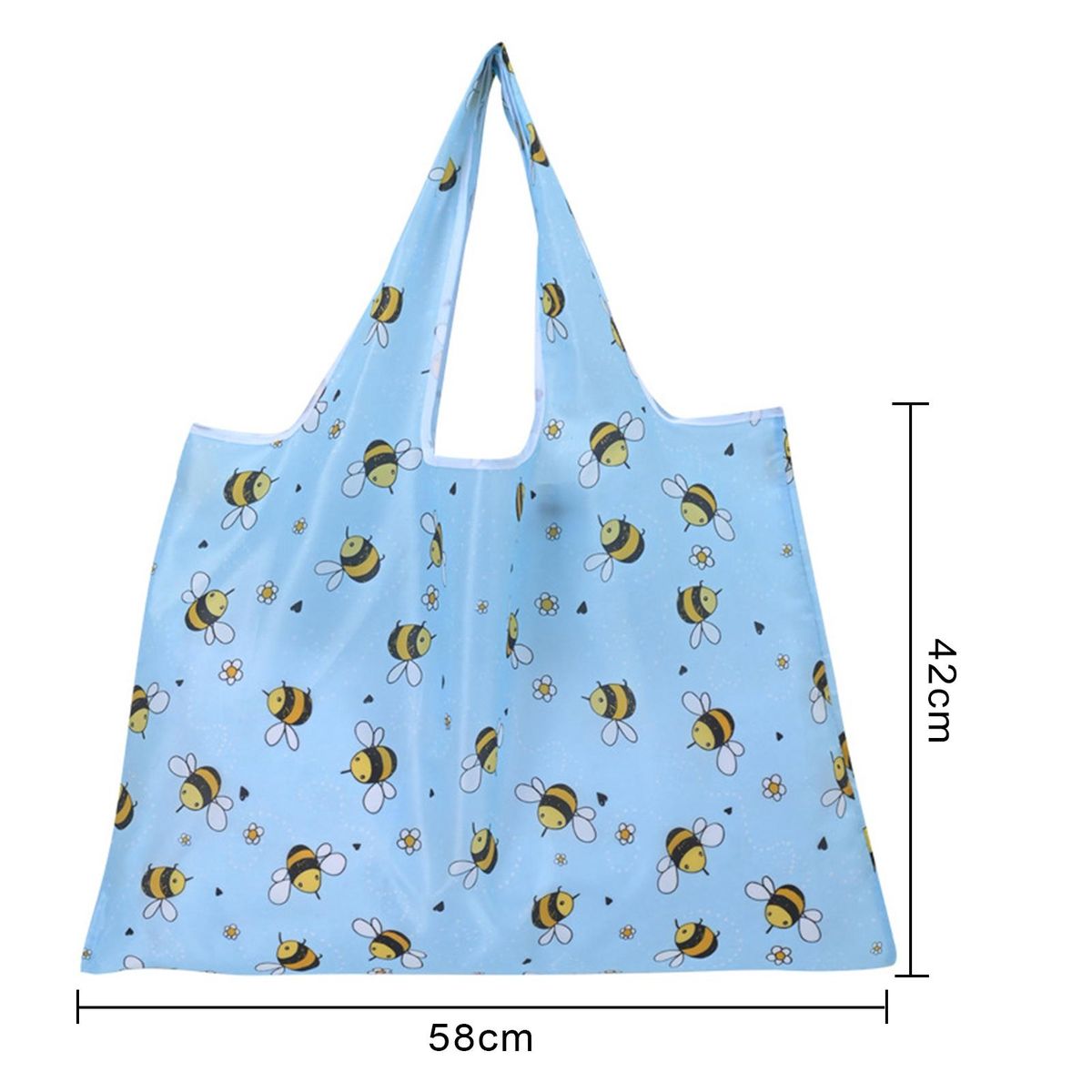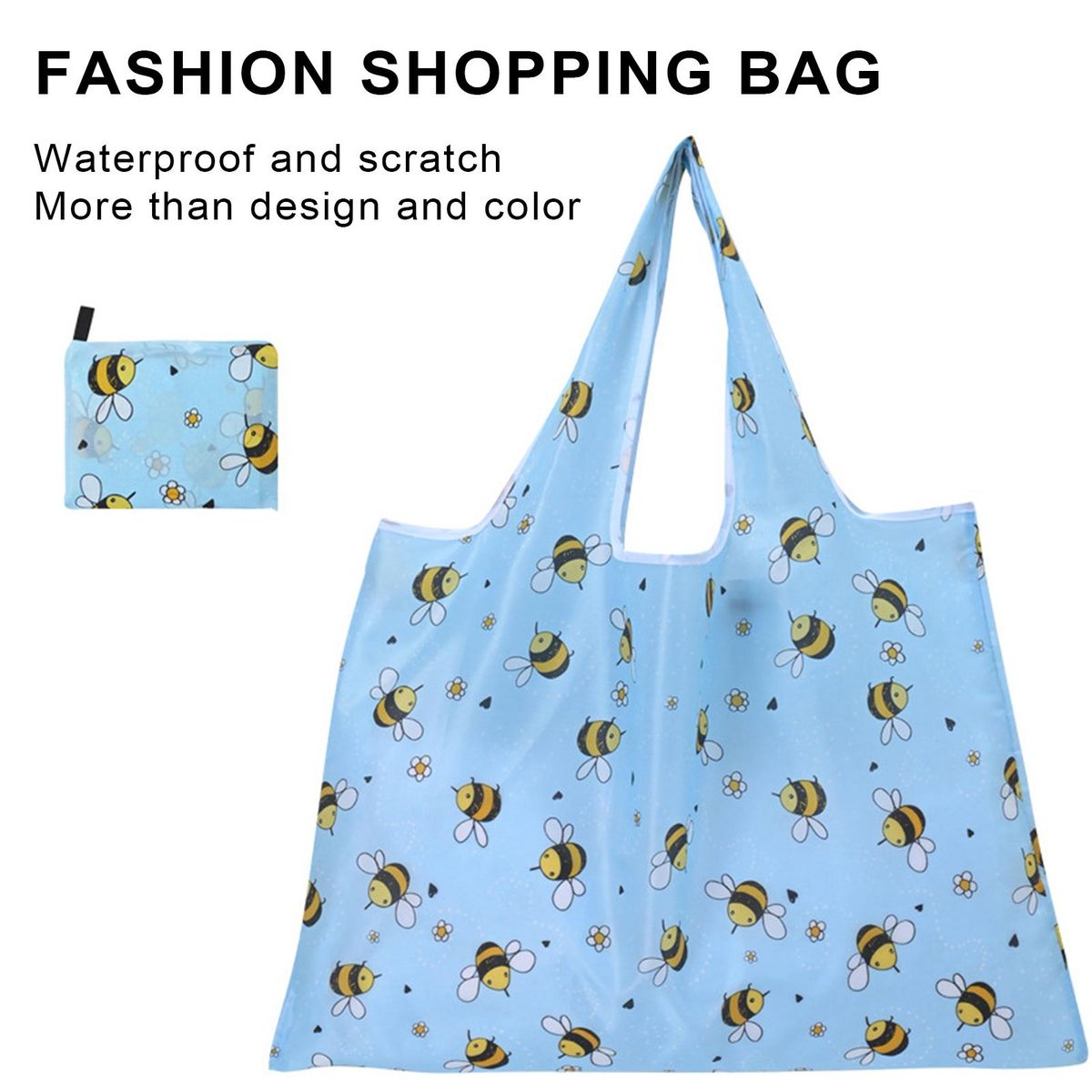 A shopping bag with cartoon prints of flowers, fruits, animals, etc., with bright colors and exquisite workmanship. With water resistance, wear resistance, easy cleaning, it can be used repeatedly.