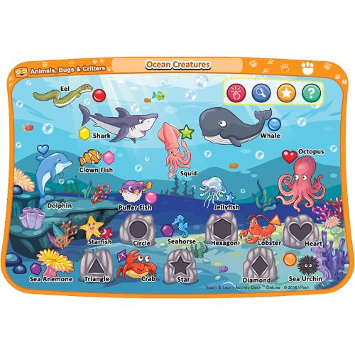 Baby will find a new place (and tons of activities) to discover around every corner of this learning table. Head to the zoo and spin the roller to hear songs about animals - or press buttons to learn shapes in English & Spanish. Take a trip to the farm and open & close the barn door to be greeted by a different farm friend. At the market, press the keys to play the piano and learn about numbers, foods & colors. Now it's off to Puppy's home! Open & close the door to hear Puppy sing his ABCs, and flip the light switch to learn opposites.