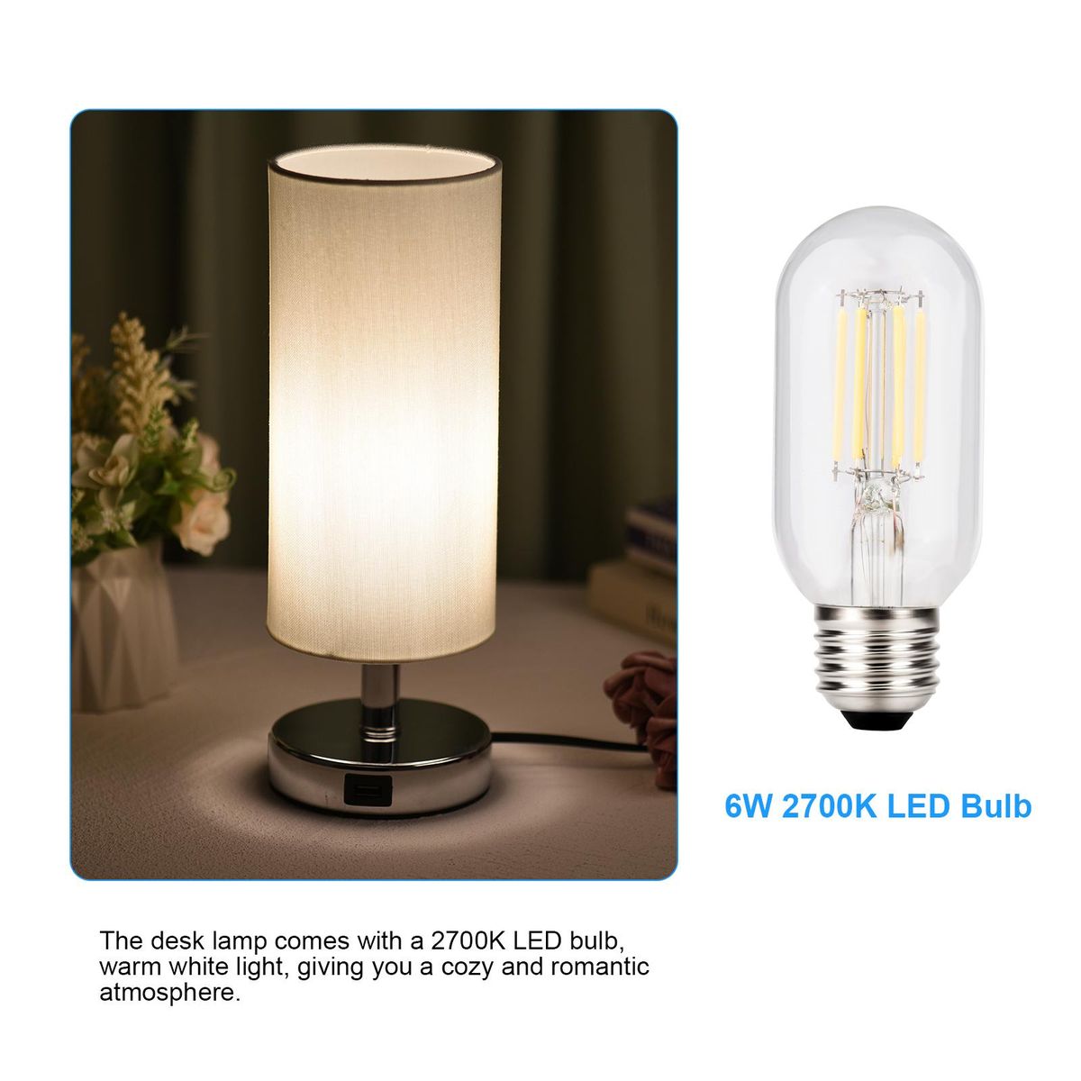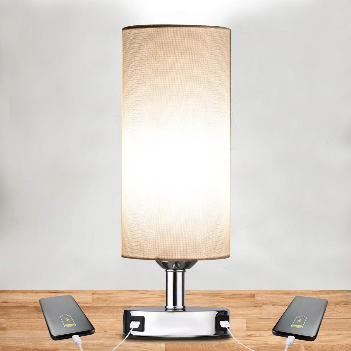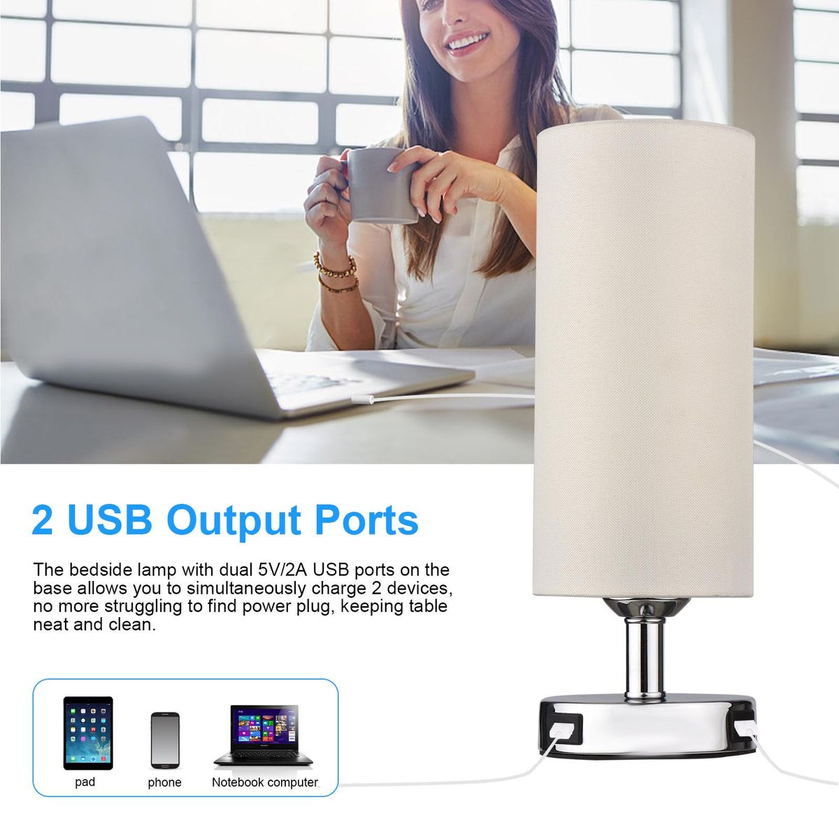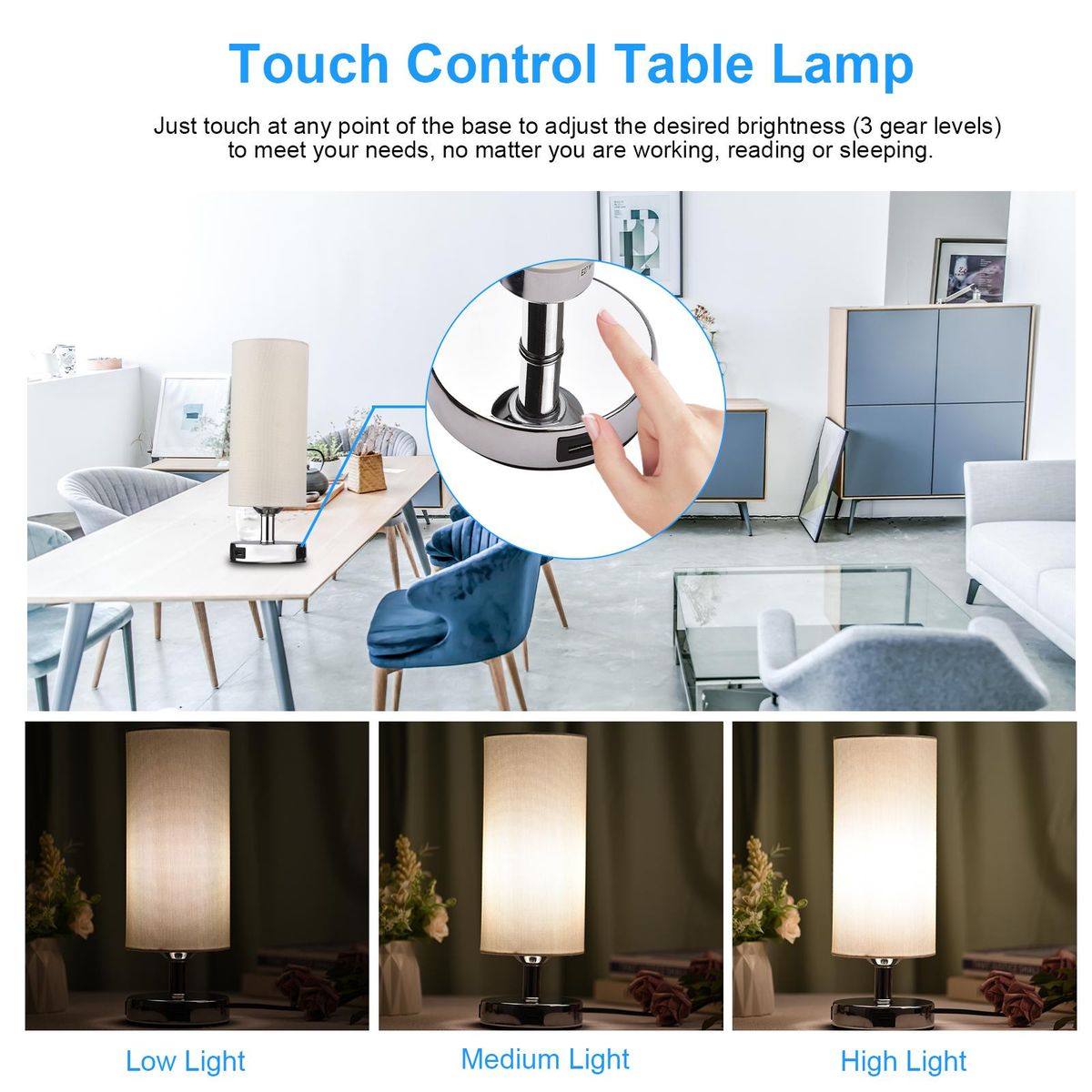Buy Touch Control Table Lamp Bedside Desk Lamp with E27 LED Bulb Warm White Light Modern Tabletop Lamp 2 USB Ports for Bedroom Living Room in Nigeria