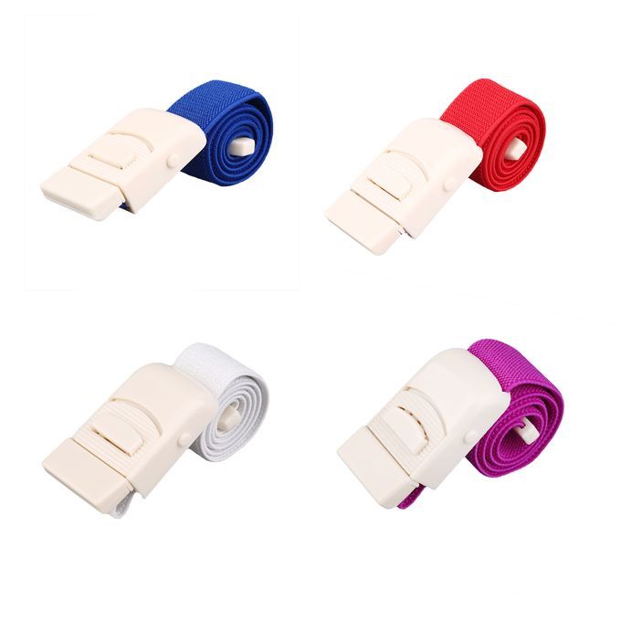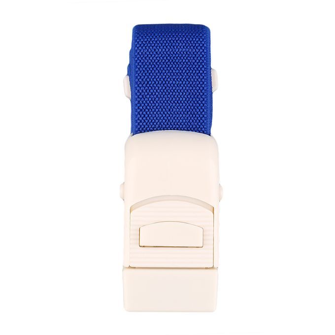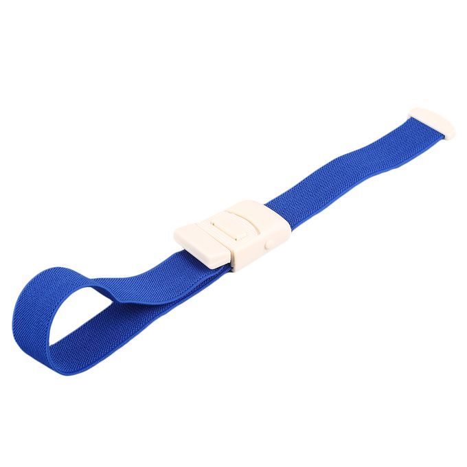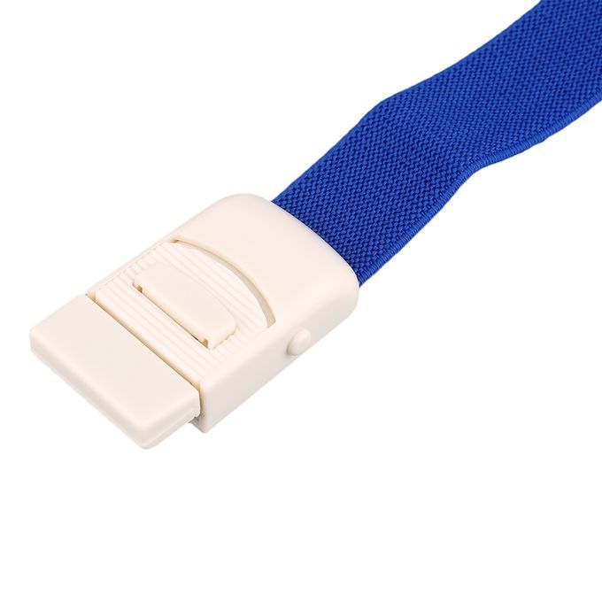 One hand operation with an automatic release. One size fits all. Accommodates adult, child, and thigh. Red band of stretch elastic gives a very tight fit. Latex free.
