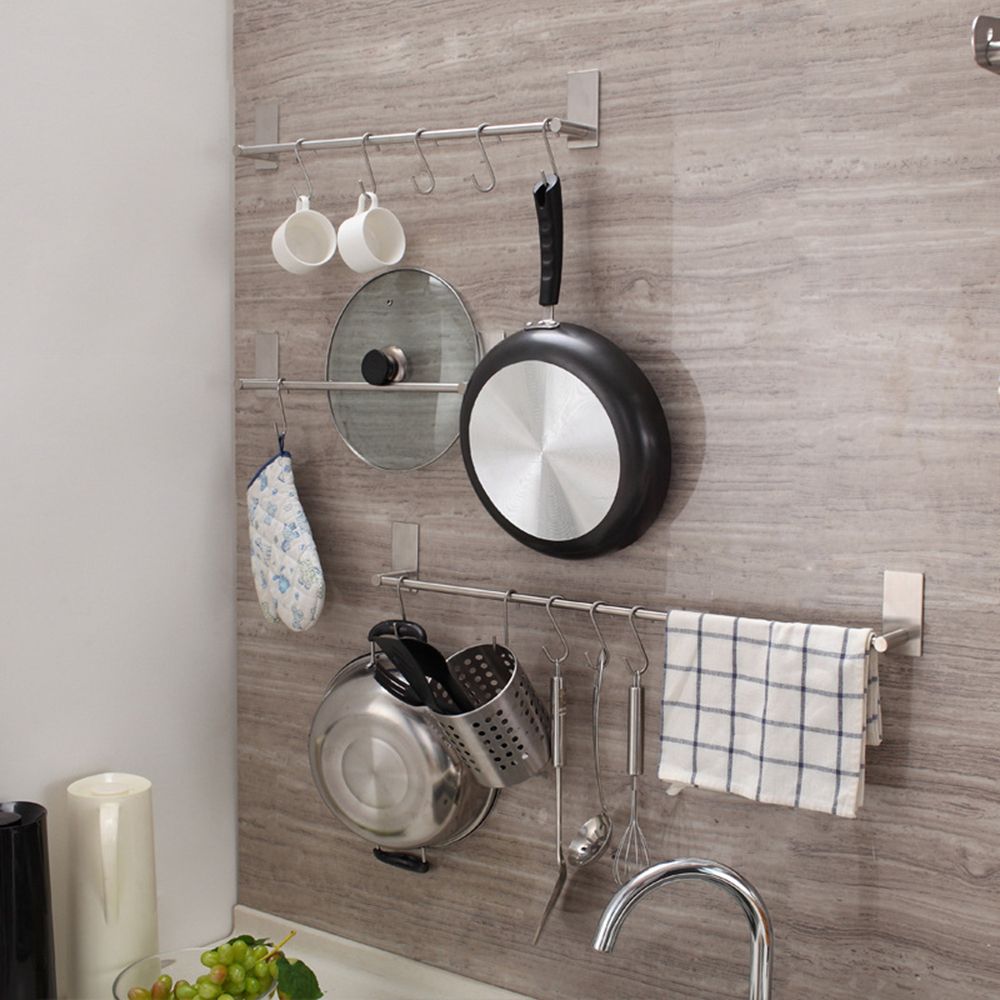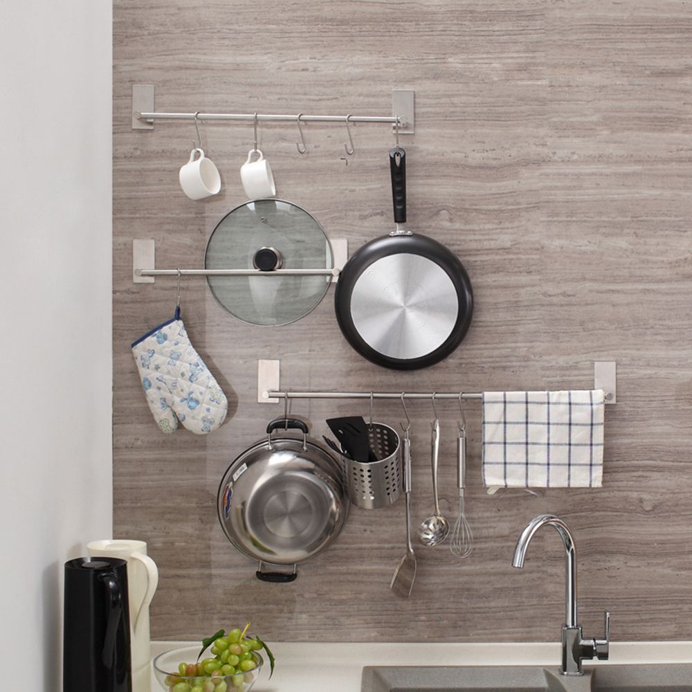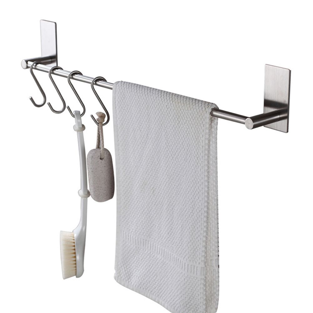 The towel rack used for collecting towels, cleaning supplies, pot shovels and other appliances in the cabinet, bathroom walls. No punching, don\'t bother to break the wall. Safety load-bearing upto 5KG.