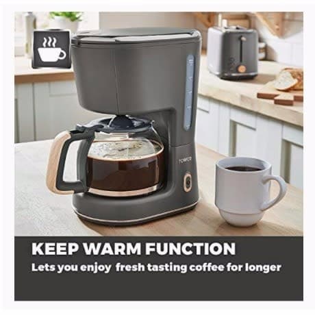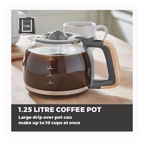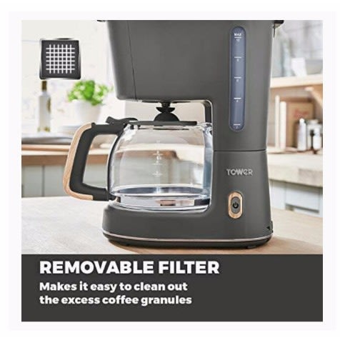 The machine uses ground coffee and features a removable washable filter. There is a water level display to make filling easier and a blue illuminated light ring comes on during brewing and stays on during the & lsquo;keep warm & rsquo; stage.