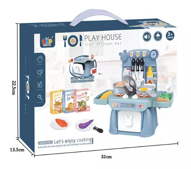 organize the kitchen station and play act as Mummy in the kitchen. This Kitchen Set is very engaging for kids who enjoy cooking. A beautiful kitchen set for pretend play that can also be used as a birthday gift for children. Battery-powered with lights & sound to keep children interested & entertained. Setup is easy, children can play as long as they want and pack up utensils into the inner storage as soon as they are done. The Play House Mini Kitchen Set is like magic to your little children. It has rotating switch that simulates