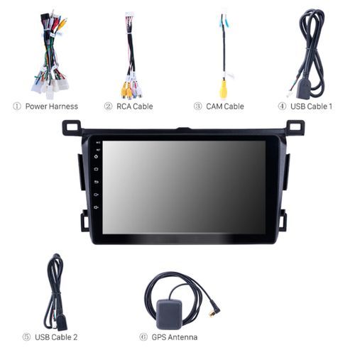 1 x ANDRIOD RAV4 2013 NAVIGATION PLAYER.1 x POWER Cable.1 x Rear camera IN Cable.1 x RCA Universal. 1 x GPS antenna.