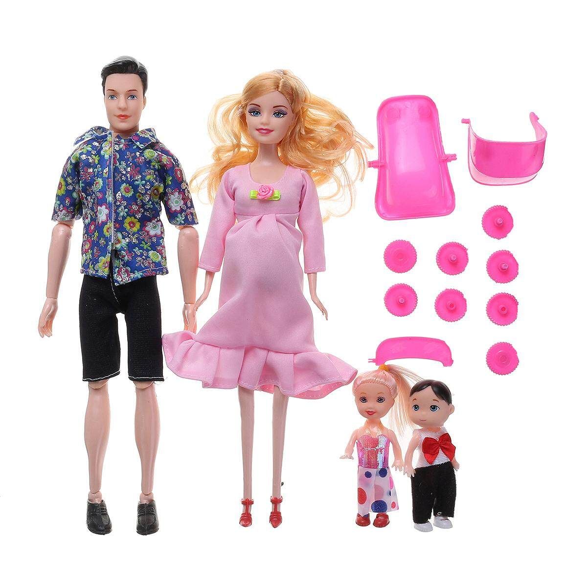 Toys Dolls Family Educational Carriage Real Pregnant Gift Mom Dad Baby 5 People