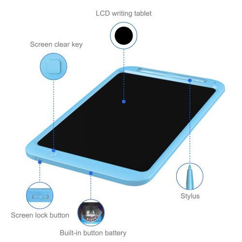 Features: 1. Children practice, writing and drawing toys. Colorful fonts that kids love. 2. Content can be locked. You can also clear content with one click. 3. Environmental protection, no paper for writing, just replace the CR2016 button battery. 4. You can hang it at the door as a memo to remind your family. 5.No blue light,Does not hurt the eyes. Package contains: 1. Draw board (Built-in button battery*1) 2. Pen 3. Packing box Products name: 15inch LCD writing tablet Material: LCD+ABS Products size: 300*210*8mm Weight: 294g Battery item: CR2016 (replaceable) Color: Pink,Blue 1.Q: What is the LCD Writing Tablet?A: (1) Flexible LCD panel, to create a real writing experience; (2) Can write on the surface with your finger nail, writing can be repeated 100,000 times; (3) The writing can be long preserved as long as not be deleted; (4) Without electricity, replaceable built-in battery can be used for 1 year; (5) No radiation, non toxic, eye friendly. 2.Q: How to Use the LCD Writing Tablet?A: 1, Pull the pen out; 2, Scribble on the pad directly; 3, Press the delete button to clear the screen; 4, Replace the battery by loosening the screw and pulling it out; 5, Erase Lock, to prevent the content delete by accidentally. 3.Q: Are you a factory or trading company?A:1.We are factory 4.Q: What is your MOQ?A:1.Usually our MOQ is 1 pcs. But of course, different quantitieshave different prices. 5.Q: How to contact us? A:1. If you have any questions about the product, you can directly contact our customer service staff. 2. If you are interested in cooperation, please contact our customer service staff directly Toys for Children 12Inch Electronic LCD Screen Drawing Board Kids Handwriting Pad Writing Tablet Drawing Digital Gift for girl