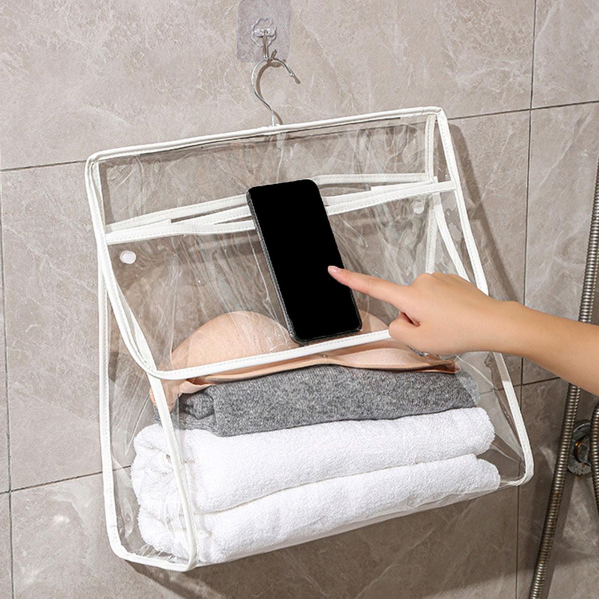 Our wall storage bag, the perfect solution to keep your bathroom clean and organized! made of high-quality tpu material, this storage bag is dust-free, waterproof, and moisture-proof, ensuring that your items stay safe and protected. with its transparent and waterproof design, you can easily locate your belongings without any hassle.