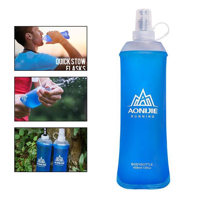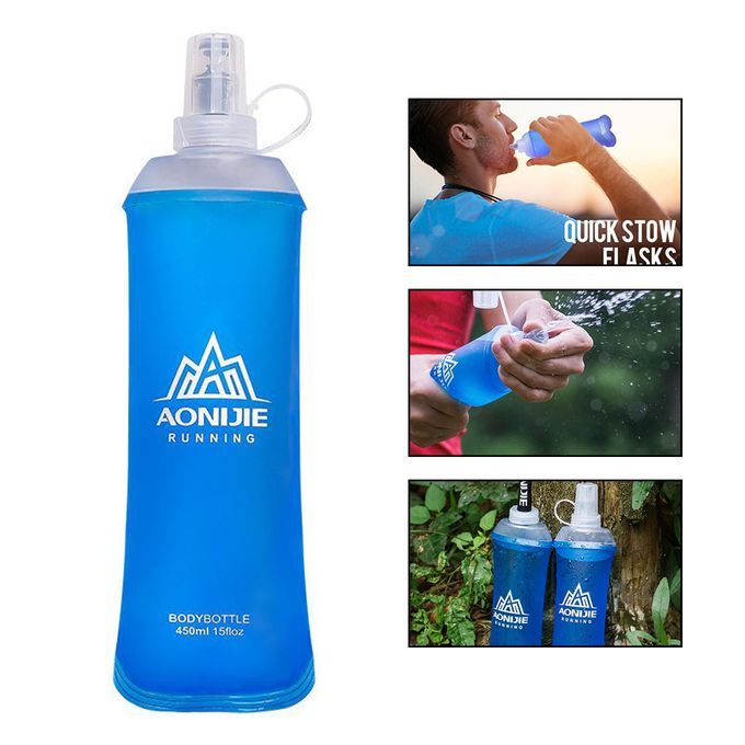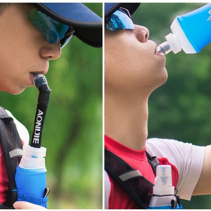 EASY POUR DRINK: With wide neck design, its convenient to pour water into the soft flask water bottle. When you want to drink water, just nibble the groove of the valve or use a straw directly without taking your running backpack off or stopping your running steps