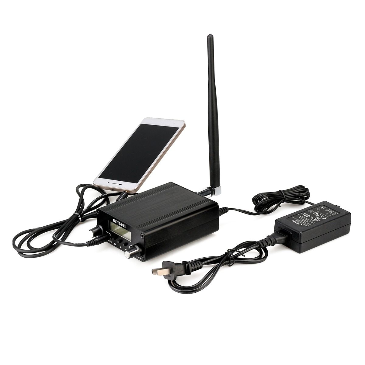Built in micro controller for frequency control and display. Built in FM stereo transmitter IC with PLL technology, surface-mount tech, reliable working condition. The transmiion frequency is highly stable, compact design with aluminum enclosure.