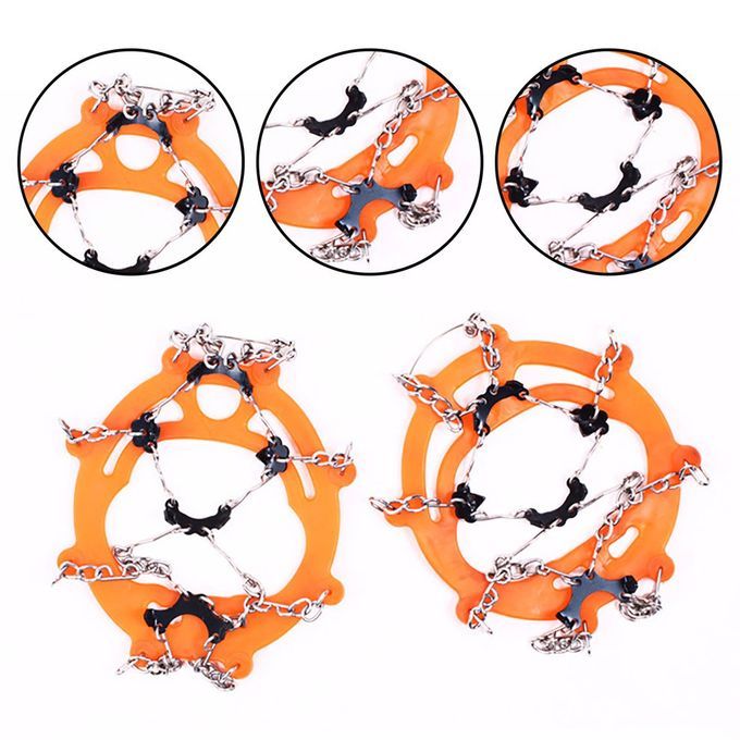 Spe ifi ations: Material: rubber + steel hain + manganese steel teeth Weight: 0.35kg/pair Suitable shoe size: 35-45 olor: orange