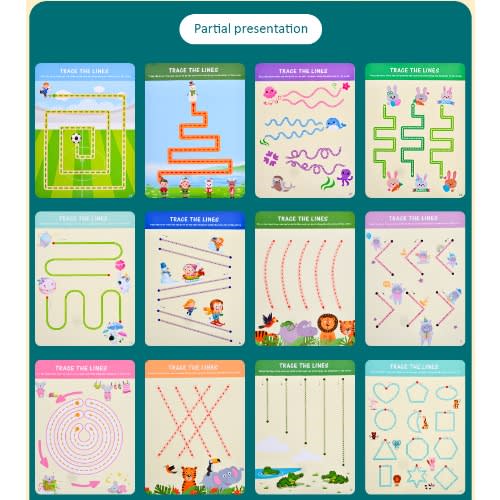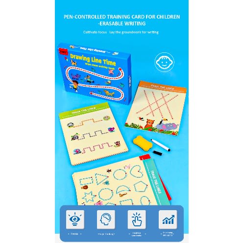 Tracing Trails Workbook for kids Handwriting Activity Kit With Tracing Dry Erase Activity cards and Crayon. Is a perfect pen control training activity to cultivate focus and lay foundation for writing.
