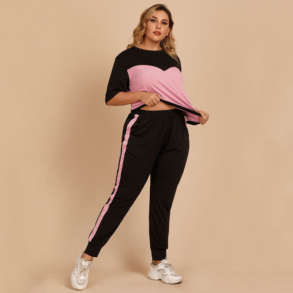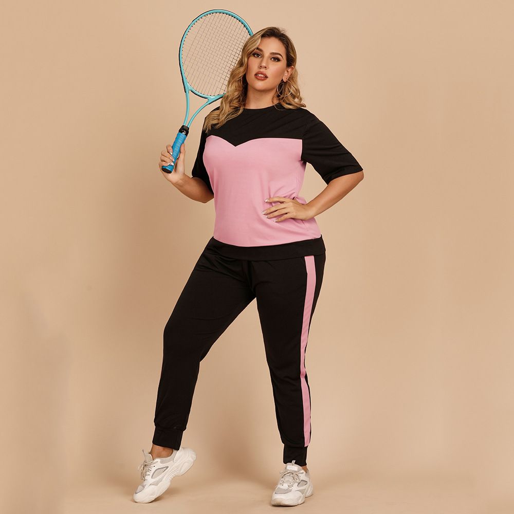 1X Fashion Tracksuit 2 Piece Set Summer Pullover Short Sleeve T-shirt + Casual Loose Pants Sports Suit Female Plus Size Sportswear