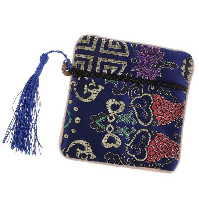 Vintage Guzheng Nail Tape Storage Bag Silk Brocade Jewelry Pouch Bag Purse Items