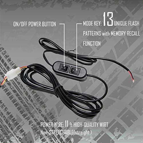 - Easy Use 13 Modes - 13 Different patterns of strobing/flashing with just a press of a button, Inludes diretional flash patterns. (Left, Right, and Center Out, and so on) .Mode Memory Funtion is available.