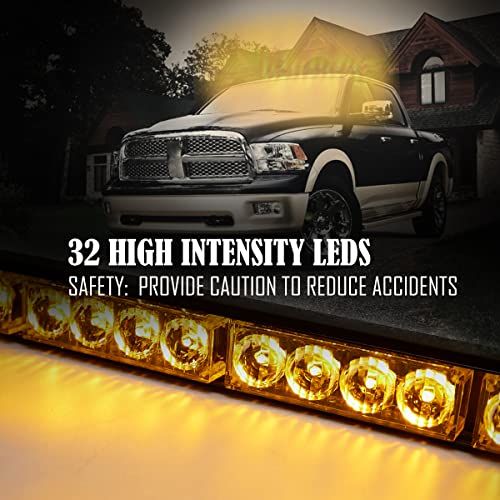 - 32 High Intensity LEDs - Brighter and more effetive than standard Led strobe lights, it is even visible during the daytime onditions.You an use it for firefighters, polie, onstrution vehiles, trailers, truks.