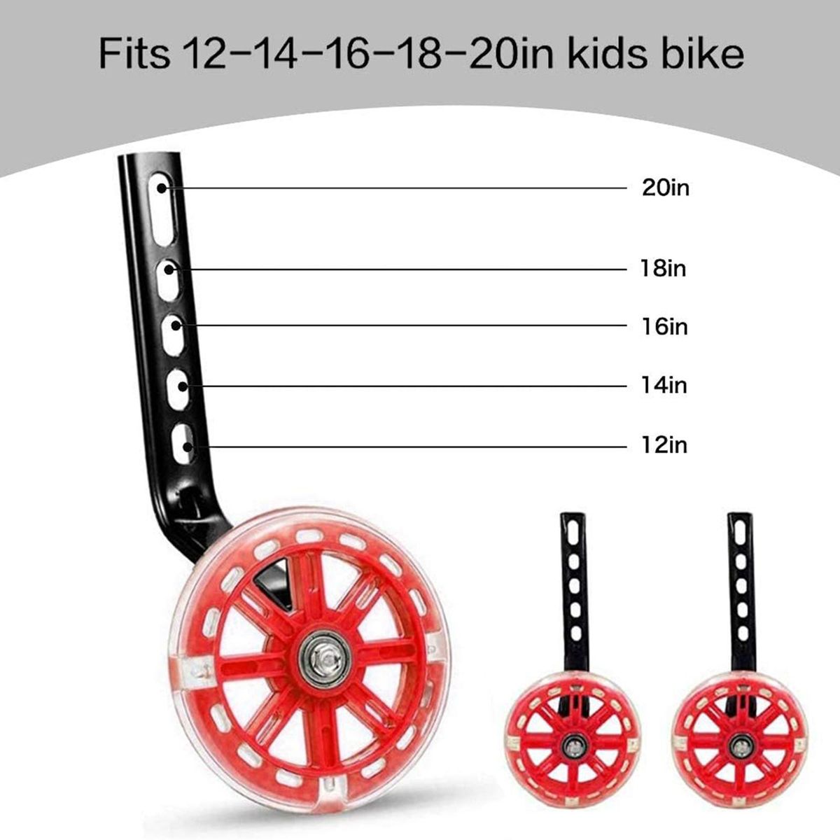 Includes everything you'll need to install the training wheels on a bike with 12-20" wheel.
