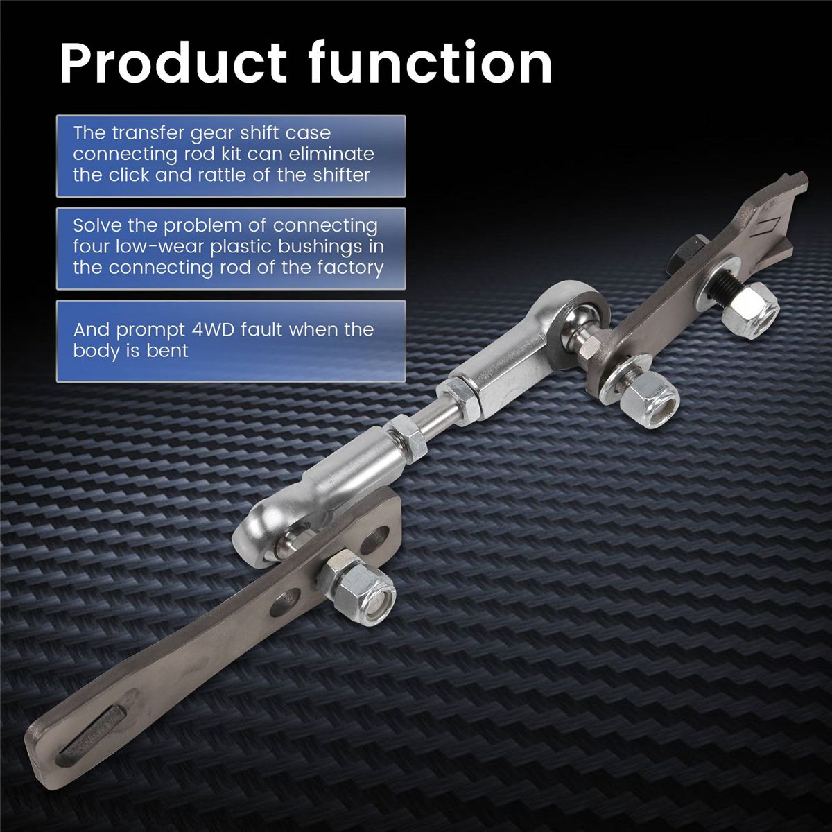 Product Function: The transfer shift case linkage kit can eliminate the click and rattle of the gear shifter, fix the problem of joining 4 low and worn plastic bushings in the factory linkage and prompt 4WD failure when the body is bent.