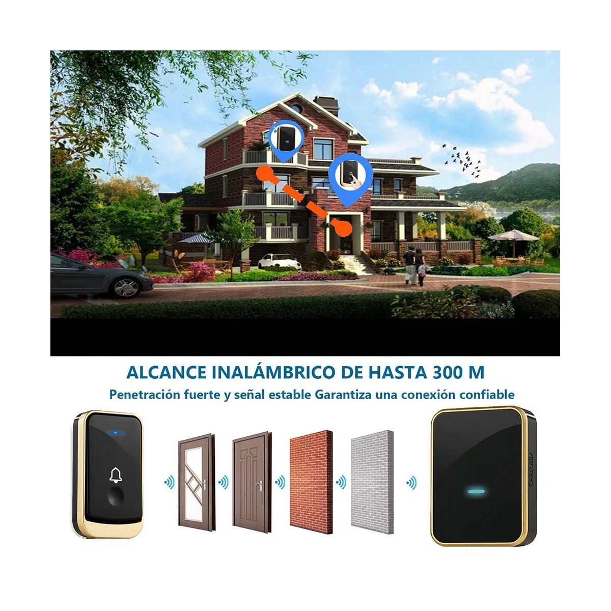 [Long Distance & Strong Signal]Open range within 300m, the signal can penetrate obstacles . Whether you're cooking in the kitchen or ing the garden, this doorbell will keep you informed so you never miss your visitor.