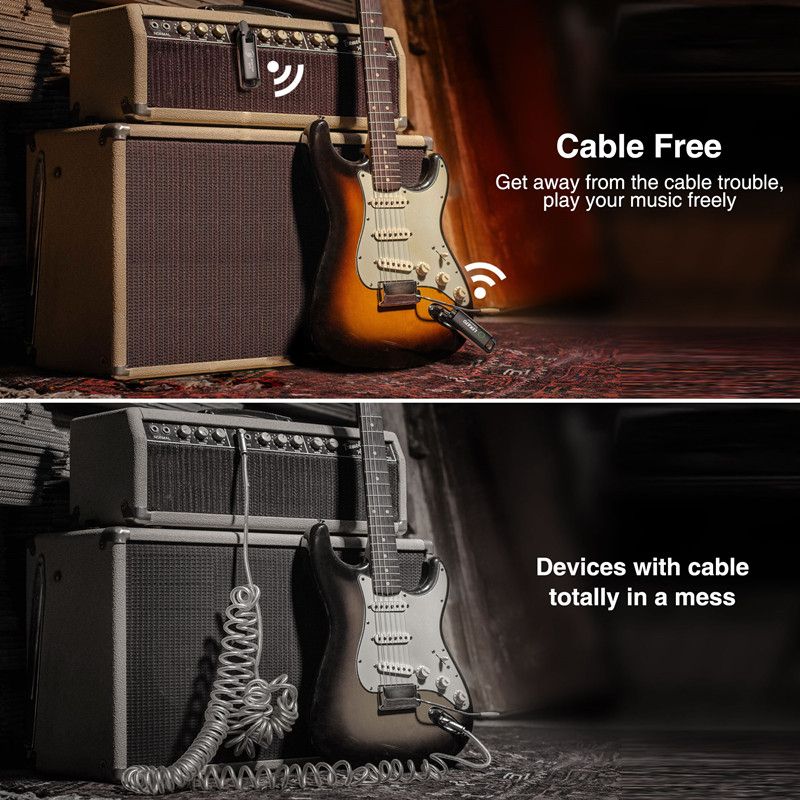 Widespread Use : A wirele guitar system delivers a full 20 Hz-20 kHz frequency response,clear signal transmiion,available for most electric guitars, ba, electric-acoustic guitars, even most popular electric music instruments, Bakelite guitar and other musical instruments with pickup.