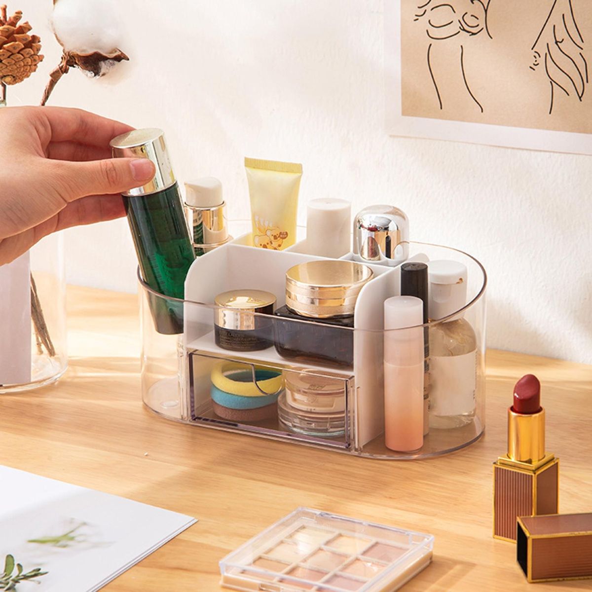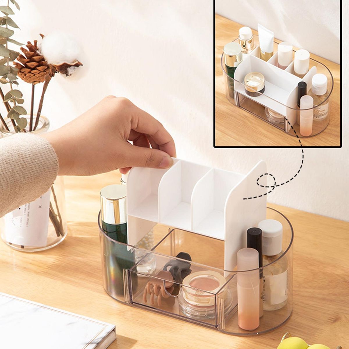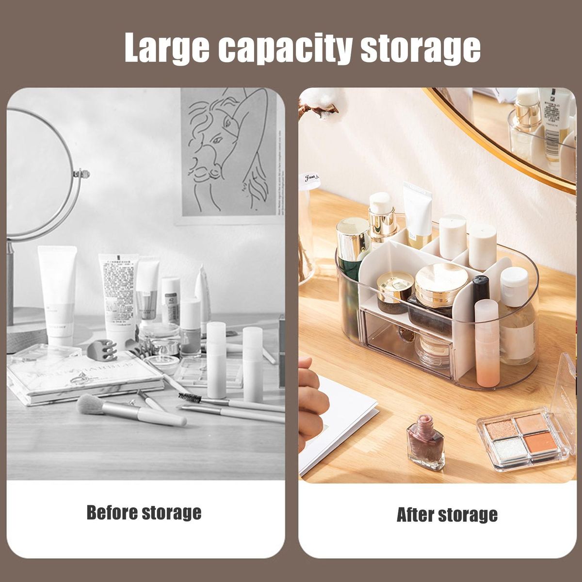 Our desktop storage box, the perfect solution for keeping your cosmetics well-organized and easily accessible. this makeup organizer storage tray is designed with detachable compartments and a drawer, allowing you to customize the layout according to your needs. .