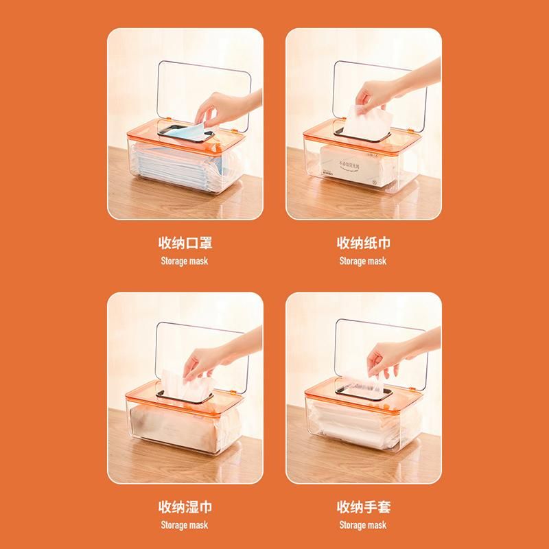 It has large capacity to hold masks and wet tissues, it is designed with lid, to prevent the mask from being contaminated with dust and bacterial.
