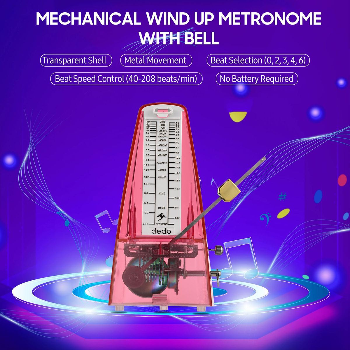 Buy Transparent Mechanical Metronome with Bell Universal Wind up Metronome with Loud Sound Beat Selection Speed Control for Guitar Piano Violin Drum in Nigeria