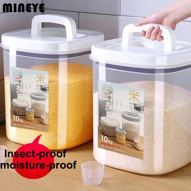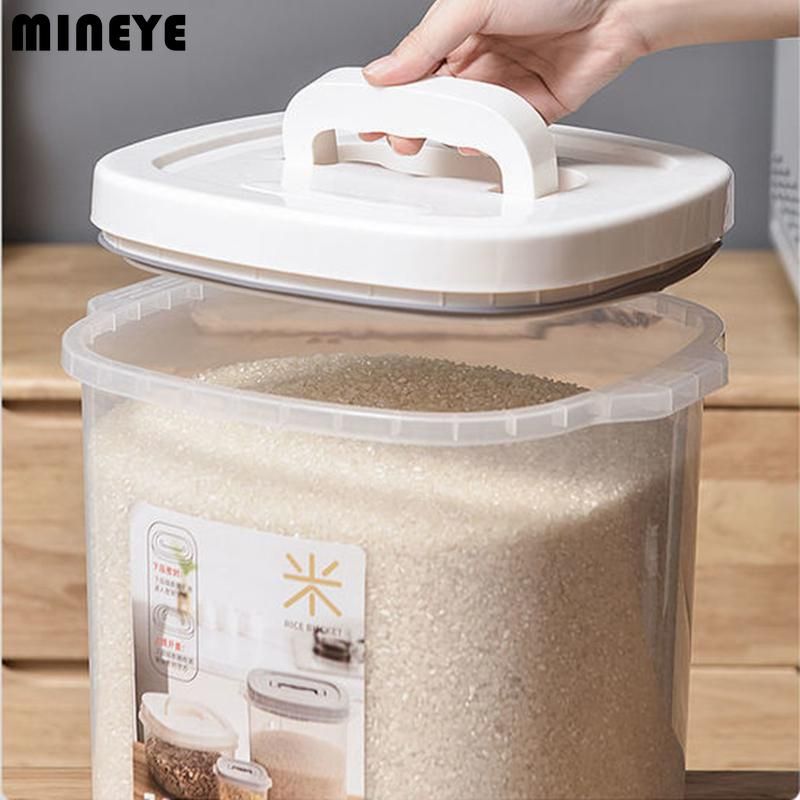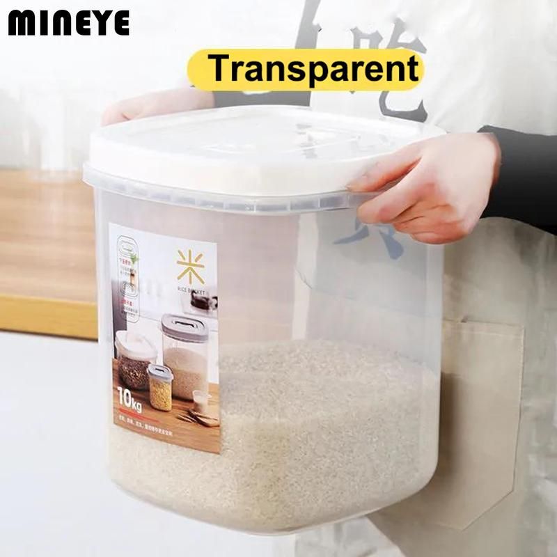 1X Transparent Rice Bucket Insect-proof Moisture-proof Sealed Flour Storage Containers Kitchen Grains Pet Dog Food Storage Box