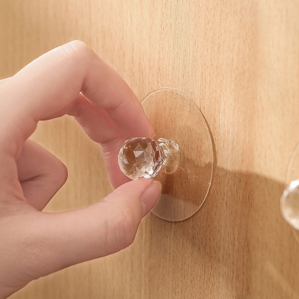 1X Transparent Self Adhesive Handles Punch-free Crystals Furniture Knobs Hook Up For Cabinets Door Drawers Office Handle 1/2/6pcs