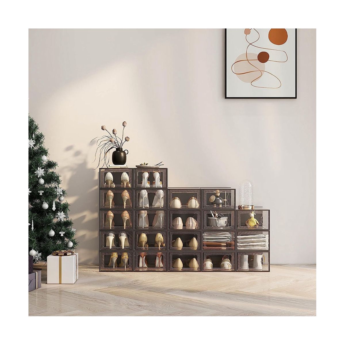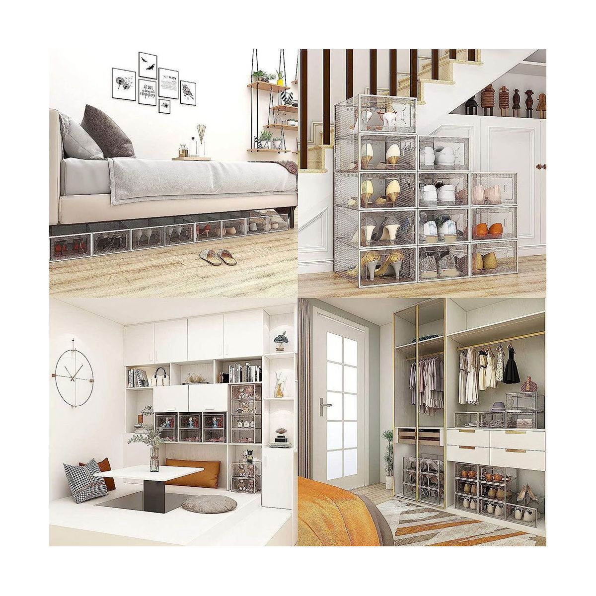 Say goodbye to the mess: stackable shoe storage boxes are dust-free and maximize storage space. Adopt the design of snap fastener to build a shoe tower and raise your shoe rack to a new level. Look through the transparent front door and find the right shoes.