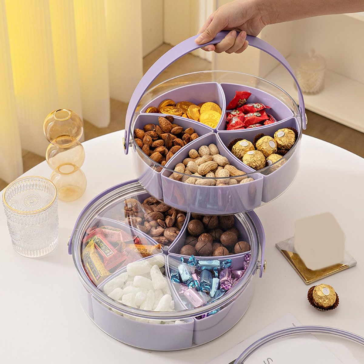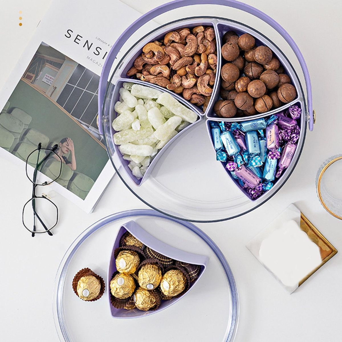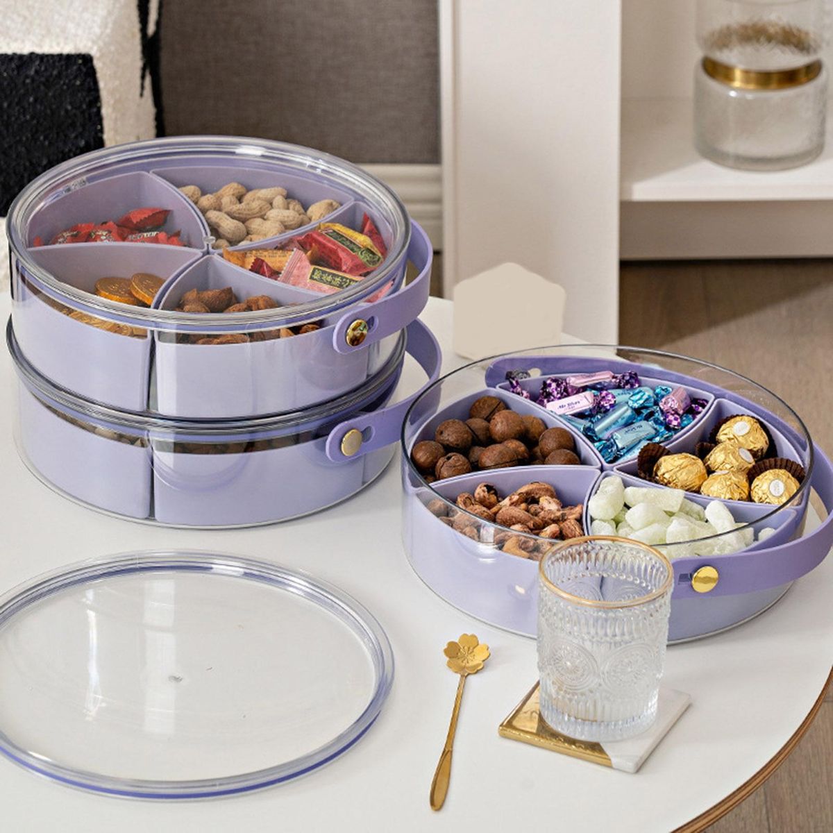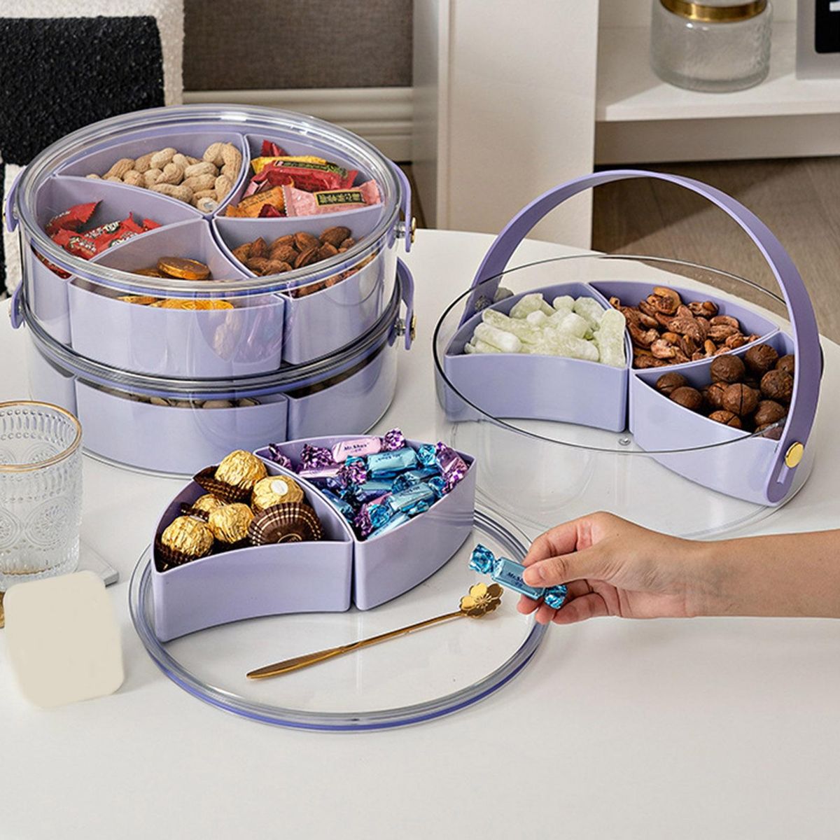 With its large-capacity design, this serving tray can hold all kinds of candies, fruits, snacks, and more. and if you need even more storage space, multiple fruit trays can be stacked and stored stably. the lid's concave edge design helps save space while keeping your food fresh and airtight.